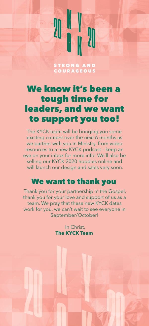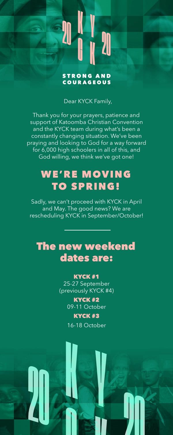 KYCK20 Rescheduled! KYCK 2020 Announcement March 19, 2020 https://vimeo.com/398148338 Rebecca Hardman Lorem ipsum amet elit morbi dolor tortor. Vivamus eget mollis nostra ullam corper. Natoque tellus semper taciti nostra primis lectus donec tortor.